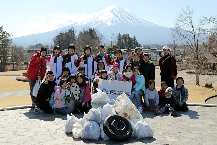 天気と富士山に負けないくらい、子ども達の晴れやかな笑顔が素敵です。よく見ると、ペットボトルに加えて、タイヤなど意図的に捨てられたとしか思えないゴミが拾われています。子ども達にこのようなゴミ拾いをさせないよう、現役世代が責任ある行動をとらないといけませんよね。