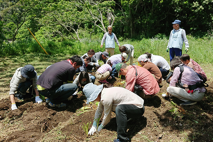 盗掘や高潮被害でなくなりかけたハマカンゾウを小網代の森いっぱいに増やすため、ハマカンゾウ畑を作り、苗を移植しました。8月に花を咲かせるのが楽しみですね。