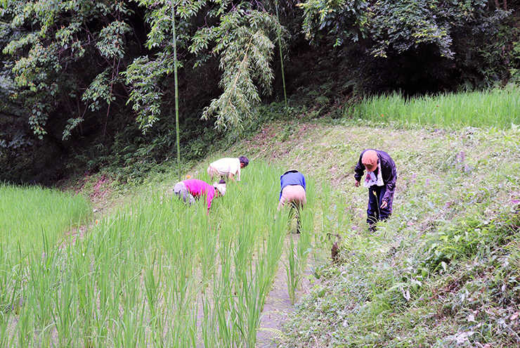 - 棚田の田草とり