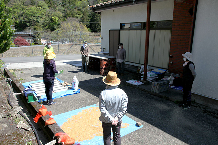 活動の継続が危ぶまれる中、「続ける」ためにスタート。最少人数でソーシャルディスタンスを守りながら、地元とのつながり、会員の方々とのつながり、色々な「つながり」を守るために、もみまきを実施しました。