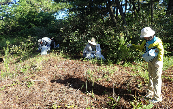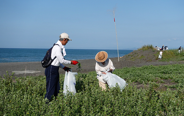 | 活動内容 | 美しい景観を有する芸西村琴ヶ浜に生育する特定外来生物「ナルトサワギク」の防除活動をおこないます。 |