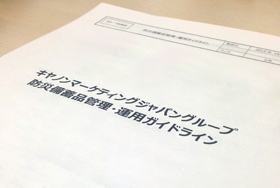 キヤノンマーケティングジャパングループ(以下、キヤノンMJグループ)は、大規模地震や新型インフルエンザなどの危機に備え、事業継続対策を推進しています。