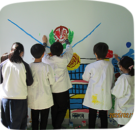 「みんなと協力して描くのが楽しかった」「大きくのびのび描けた」「絵をたくさん描いたら学校が明るくなった」など、どの子どもたちも楽しそうに取り組んでいました。普段は絵を苦手と感じている子も、いきいきと筆を動かす姿が見られて嬉しかったです。一人で静かに集中する子、友人と協力しながら取り組む子、それぞれが真剣に活動している様子が非常に印象的でした。