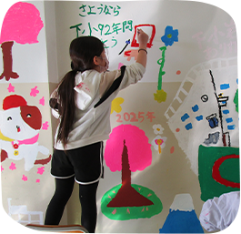 令和7年4月の「校舎のお別れ会」には、1800名もの地域の方が来場し、校舎にメッセージや絵を描いてくださいました。地城の皆様に支えられ、親しまれてきた学校であることを、改めて深く実感しました。