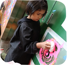 担当教師は、校舎への壁画体験がなかったのですが、必要な画材の種類や量、使い方、プロジェクトの進め方やさまざまなアイディアを教えていただけたことで充実した内容で授業ができました。(野口)