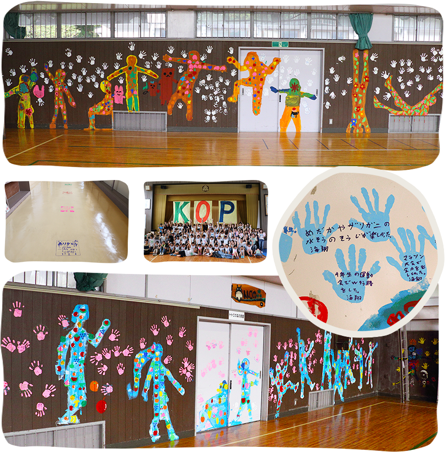 校舎にペイントするという大胆なプロジェクトと児童の興味津々なやる気がマッチした素晴らしい企画です。児童、保護者、地域の方々が注目する一大イベントとなり今でもやってよかったと思えます。(野澤先生)