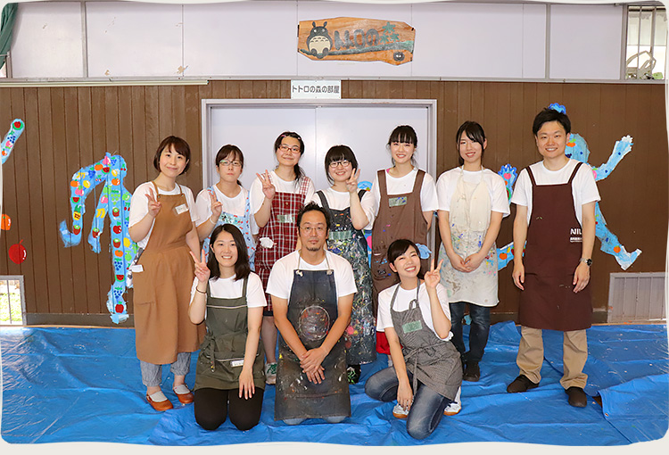 児童も保護者、地域の方々も大変よろこんでいました。校舎に絵を描く経験は初めてであり、今まで過ごしてきた学校に感謝の気持ちを込め、親子で一緒に活動できたことは、参加者にとって思い出深い活動になったと思います(小川校長先生)