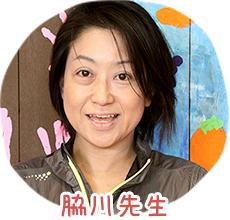 作品制作中も髪の毛や顔にまでも絵の具が付いてしまったりしてましたが、それでもニコニコ楽しそうに活動している児童の姿が印象的でした。(栗木先生)