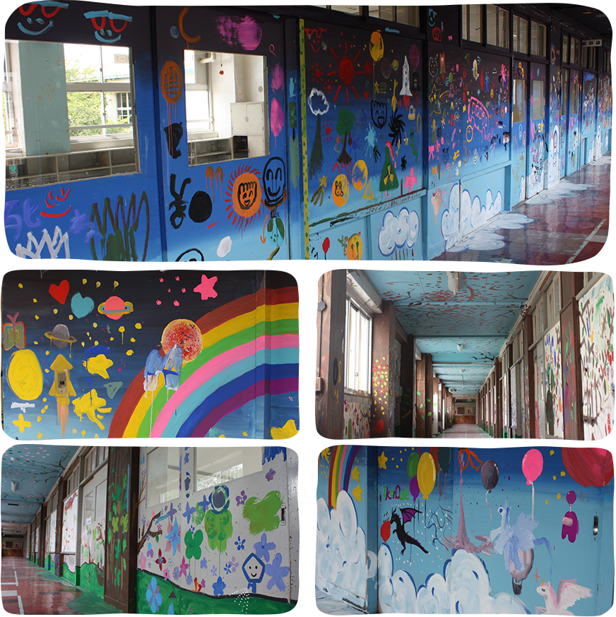 学校の壁という本来描いてはいけない場所に、初めて子どもたちが描いていくときはどのような反応でしたか?