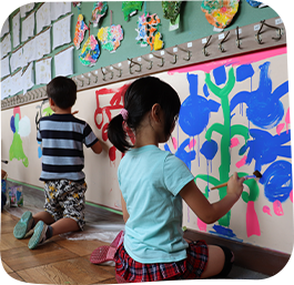 PTA会長 平沢様:本当に描いていいの?という後ろめたさなのか最初は戸惑いながら遠慮がちに描いていたのが、友達や保護者が一緒に描き始めると嬉しそうな顔をしながら楽しんで描いていたのが印象的でした。