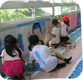 学校の壁という本来描いてはいけない場所に、初めて子どもたちが描いていくときはどのような反応でしたか?