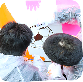 子どもたち同士が助け合いながら制作を進めていきました。困ったり変更したりなった時には、相談しあう姿や、意欲的にそして笑顔で取り組み姿が、とても印象に残っています。(大門先生)